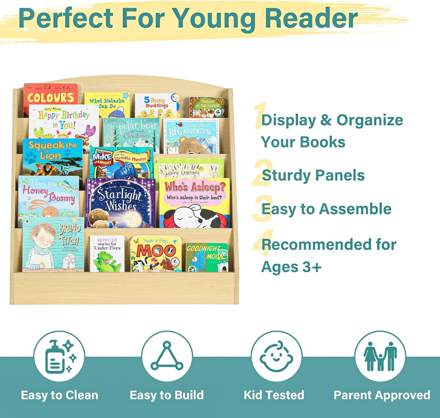 TOETOL 5-Tier Kids Bookshelf - Toddler Book Display Shelves for Classrooms, Playrooms, and Nursery - Wooden Children Book Rack (Natural)
