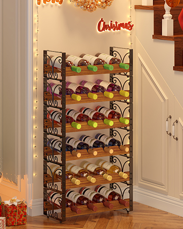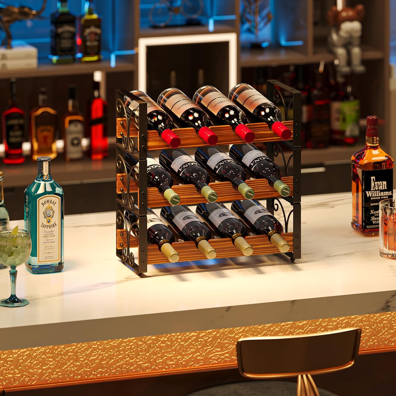 X-cosrack Wine Rack Countertop, 3-Tier 12 Bottles Small Wine Rack Stackable for Inside Cabinet, Solid Wood & Wrought Iron Wine Bottle Holder, Wine Storage Shelf for Kitchen Bar Dining Room